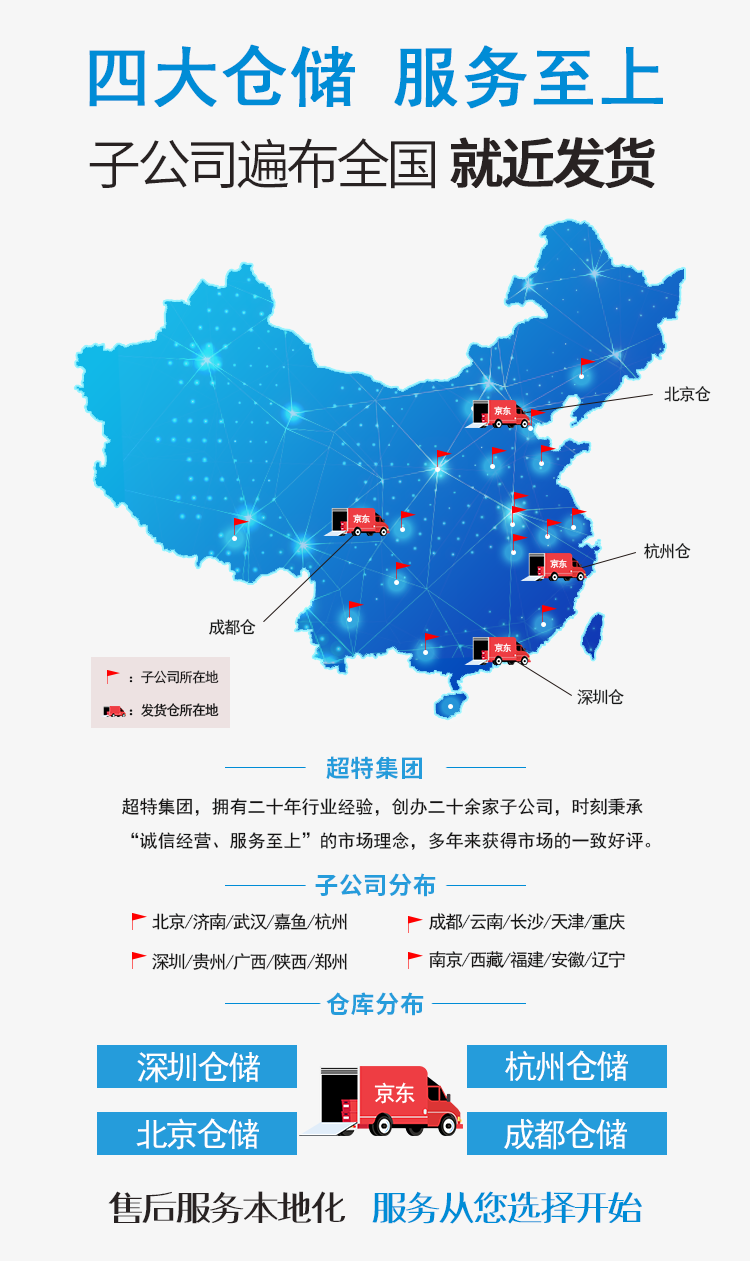 覆盖全国区域的城市分子公司,四大仓储中心,服务响应迅速。